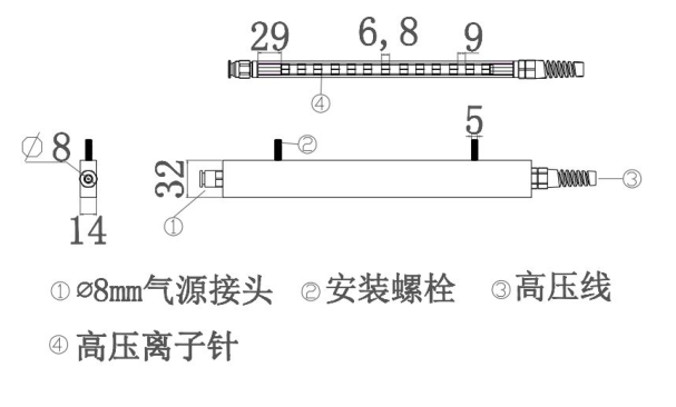 KP505A第4.5代機械與智能型小方棒是一種可選擇連接或不連接壓縮空氣除靜電裝置,未連接壓縮空氣的消除靜電距離建議在 100mm 以內,連接壓縮空氣的消除靜電距離建議在300mm 以內。是一種固定式的除靜電設備,需配上高壓電源供應器才可使用。長度可以按客戶的要求定做。具有安裝簡易、工作穩(wěn)定、消除靜電速度快的特點。