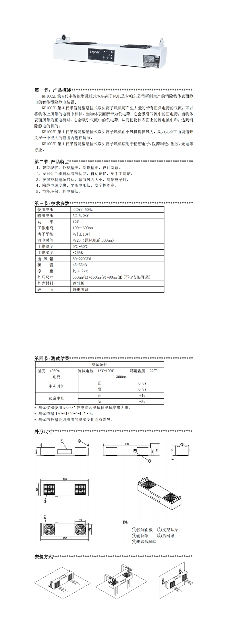 KP1002D第4代半智能型懸掛式雙頭離子風機