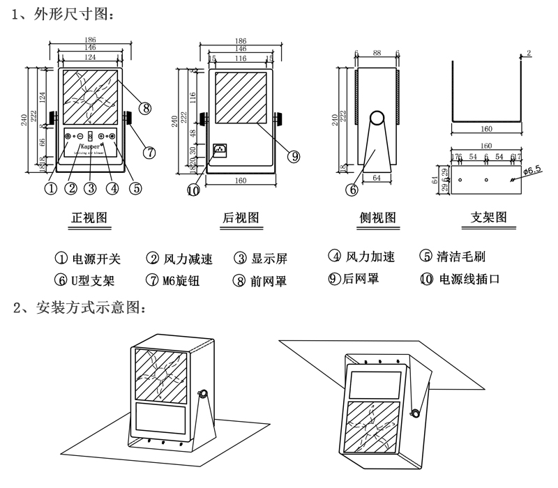 186mm(L)*100mm(W)*240mm(H) |