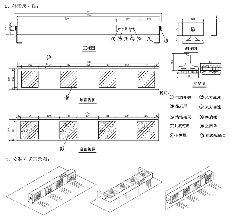 KP104A第5代智能型懸掛式四頭離子風機是卡帕爾公司新研制生產的消除物體表面靜電的智能型除靜電裝置。